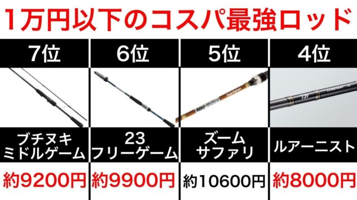 今回は1万円以下で購入できる、万能に使えるスピニングロッドをランキング形式で紹介していきます