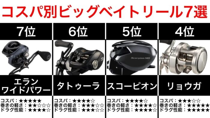 「ビッグベイトやジャイアントベイトの釣りに挑戦してみたいけど、予算はなるべく抑えたい」という方に、真っ先におすすめしたいリールです。